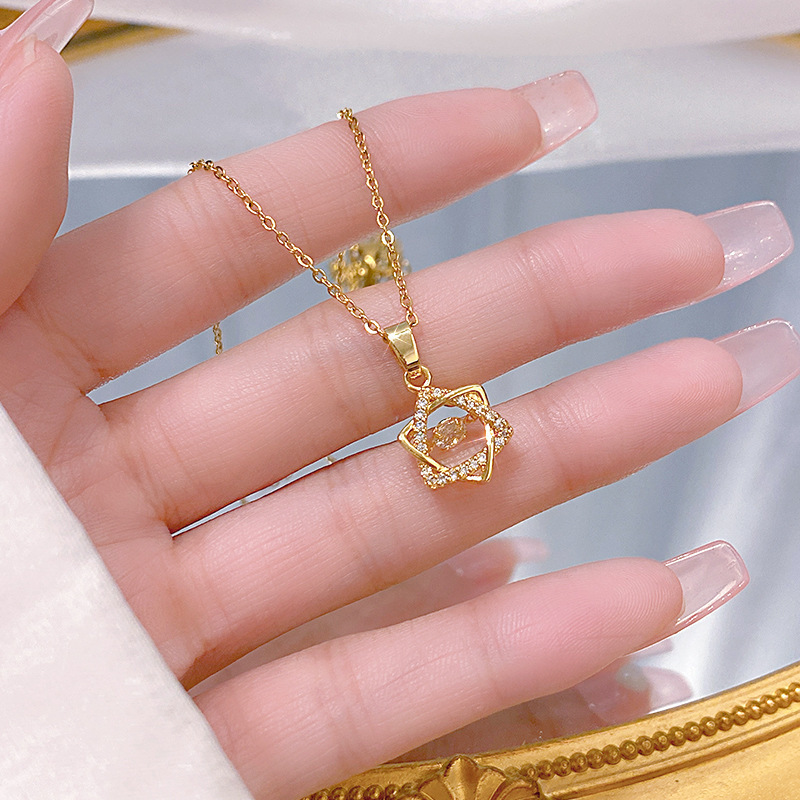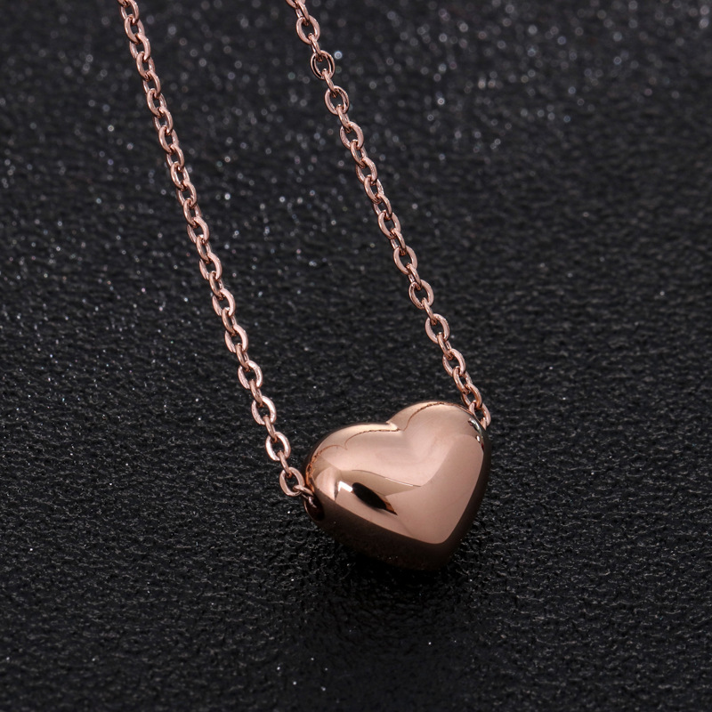 Korean Love-Shaped Titanium Steel Plated Girls Rose Gold Women's Necklace Pendant Clavicle Chain Rose Gold Color Gold Jewelry Wholesale
