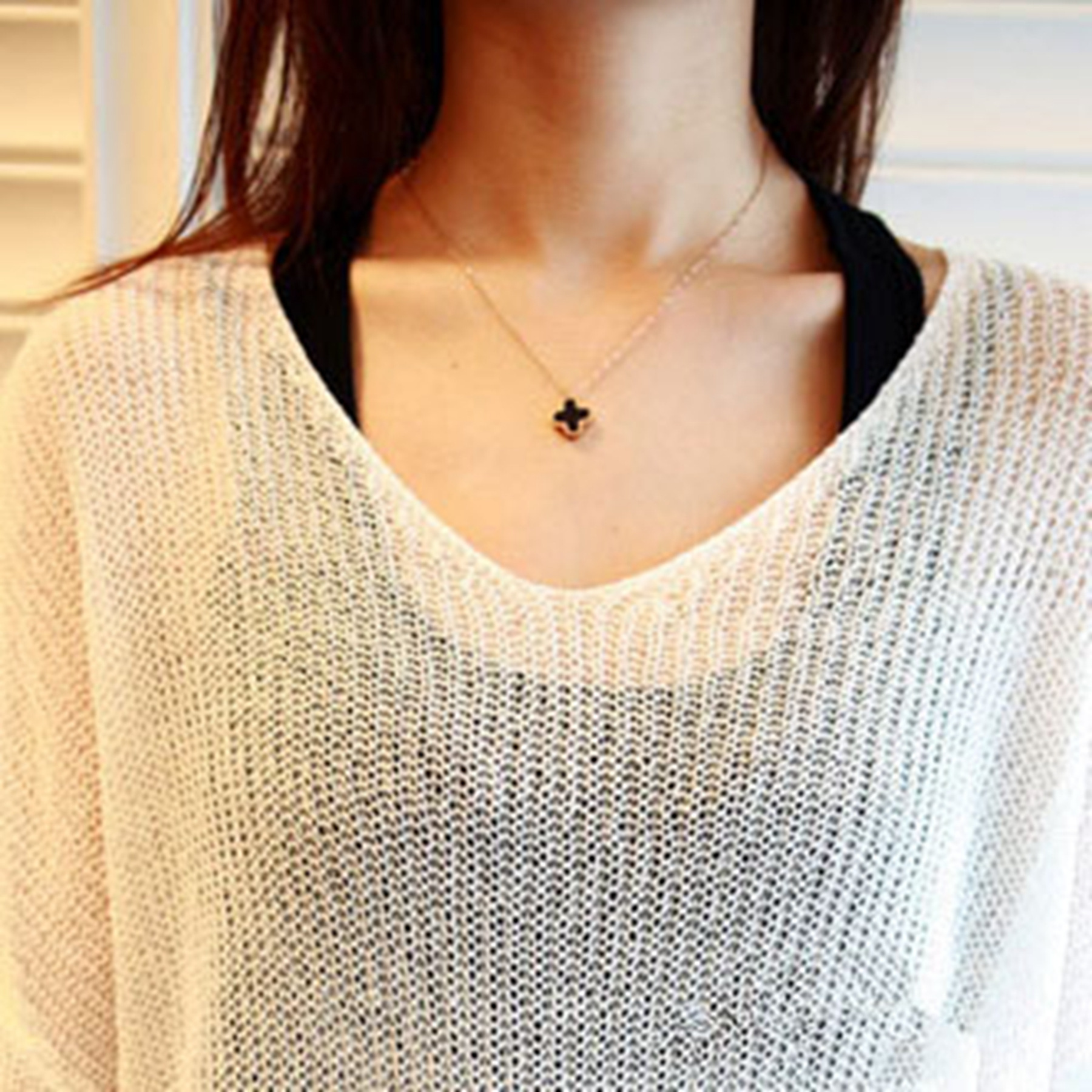 New Titanium Steel Four-Leaf Clover Double-Sided Titanium Steel Necklace, One Side Jewelry Shell, One Side Black Rose Gold Girls Necklace