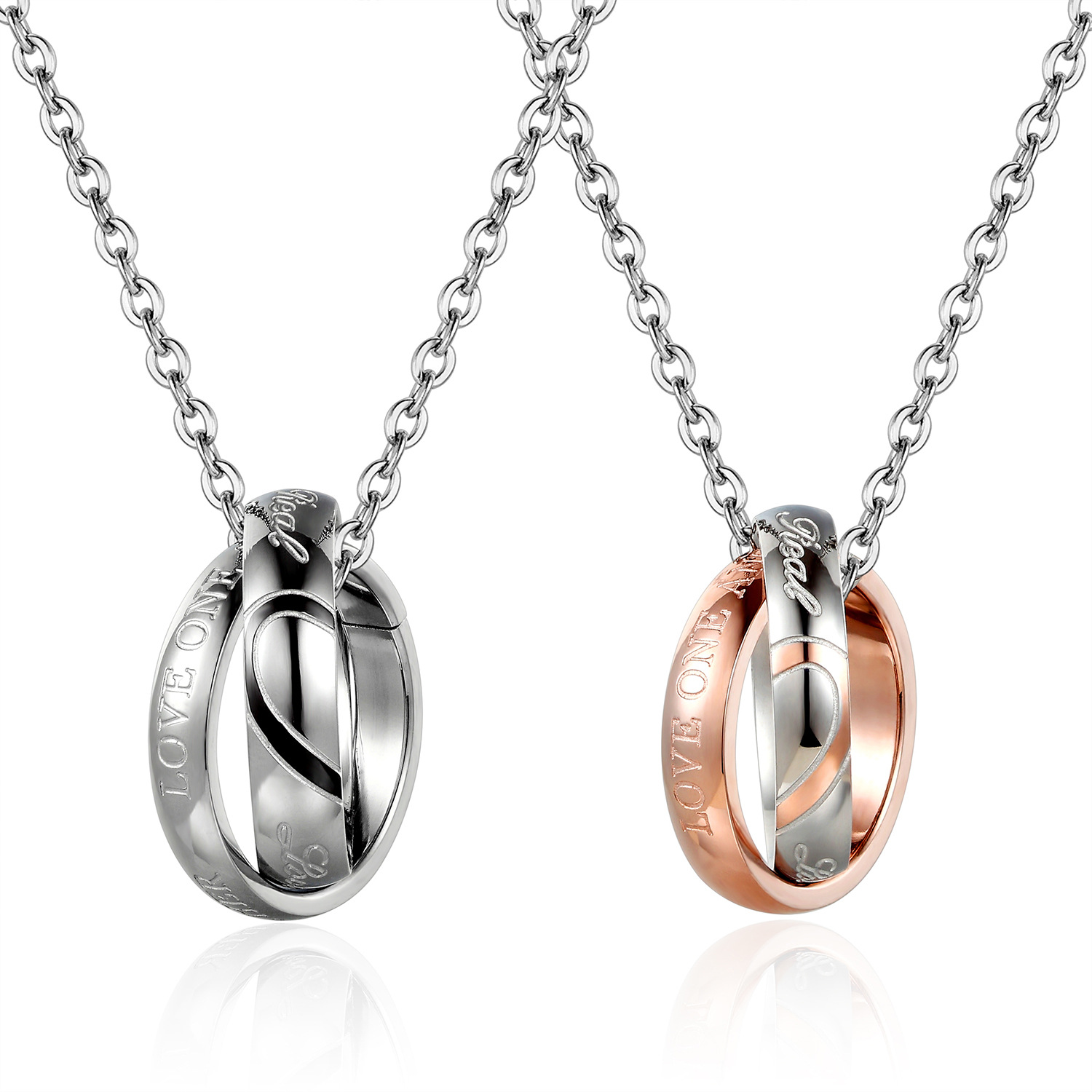 Korean jewelry wholesale stainless steel couple heart pendant double ring combined love Valentine's Day gift P234
