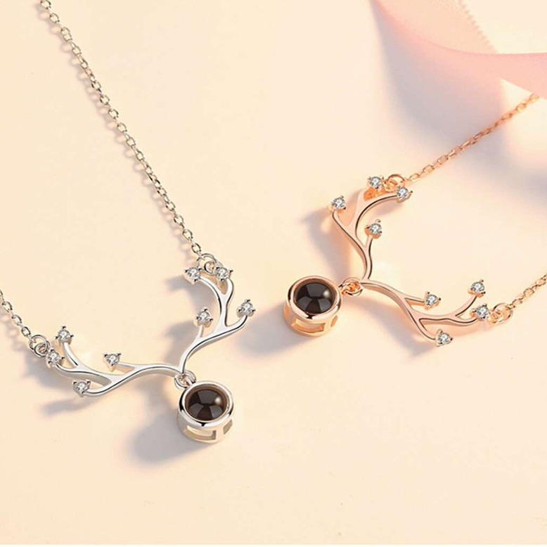 Hot sale 100 languages I love you projection stone necklace a deer has you antlers fashion clavicle chain pendant wholesale