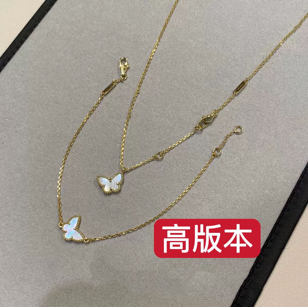 High-End Cnc Engraved V-Shaped Gold Four-Leaf Clover Butterfly Series Necklace with Thick 18K Gold-Plated White Mother-Of-Pearl Pendant Clavicle Chain