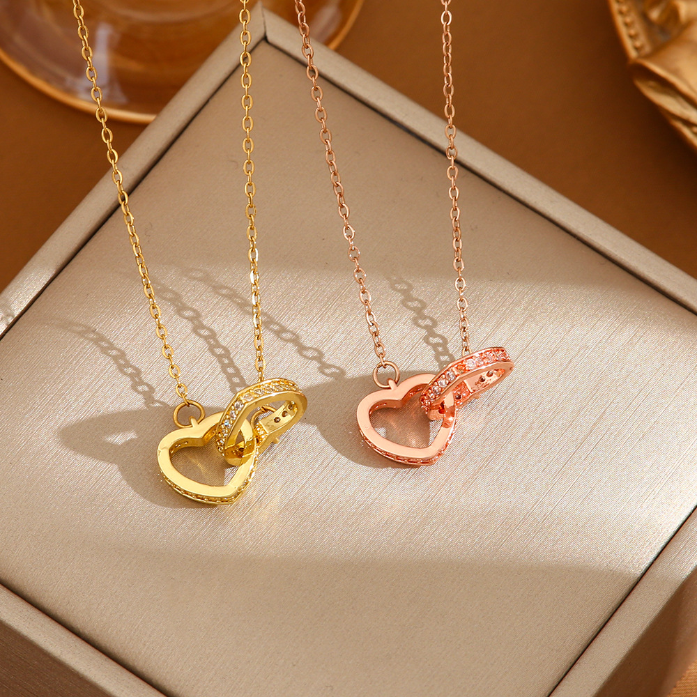 Europe and the United States cross-border heart-to-heart titanium steel necklace fashion clavicle chain women's fashion simple Joker jewelry manufacturers wholesale
