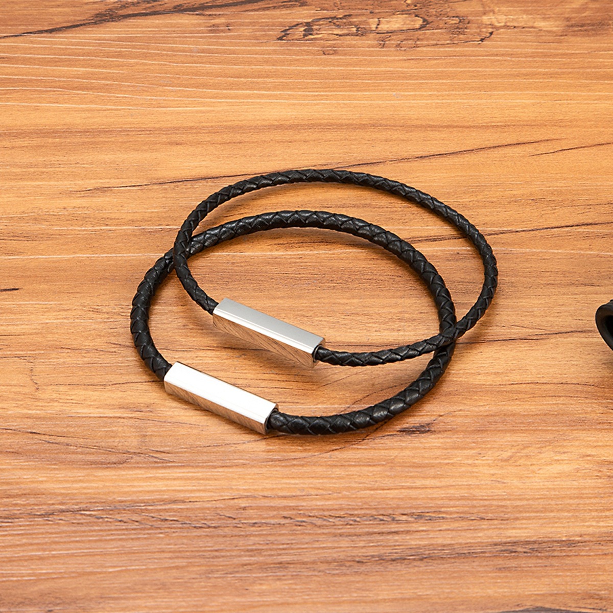 New 3/4mm Genuine Leather Magnetic Buckle Simple Stainless Steel Men's Export Bracelet Bracelet European and American Popular Jewelry