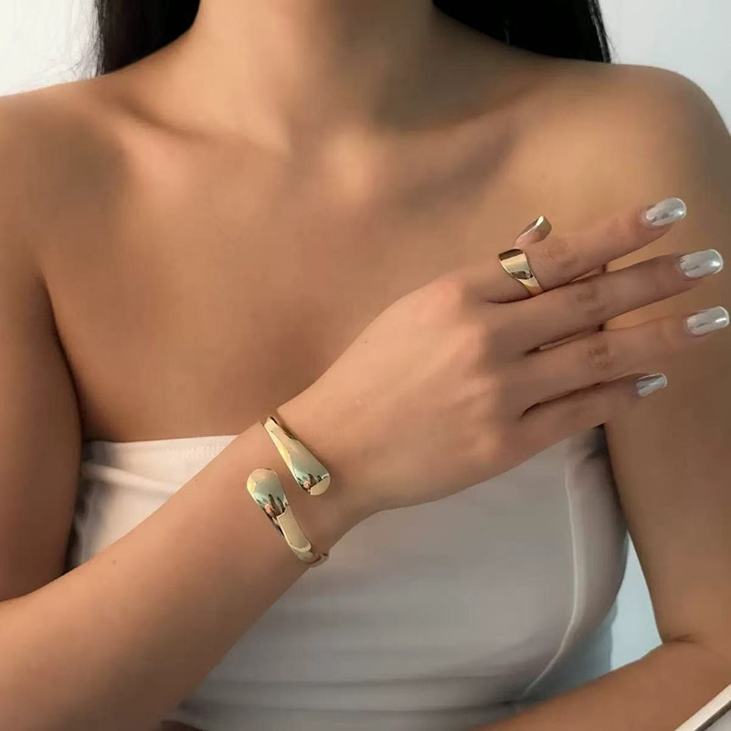 Temu Cross-Border Glossy Bracelet Ring Set Personalized Opening Adjustment Asymmetrical Bracelet Versatile Women's Hand Jewelry