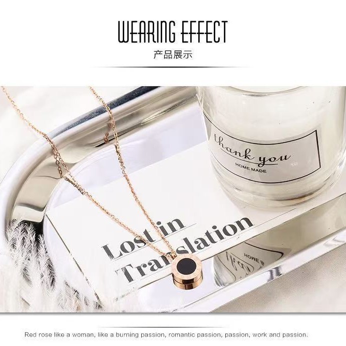 Roman Numeral Necklace for Women Titanium Steel Rose Gold Popular Black and White Shell Double-Sided Disc Magnetic Korean Style Fashion Clavicle Chain
