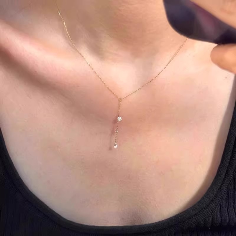 "Tears of Stars" Flash Zircon Tassel Necklace 2024 New French Style Extremely Fine Light Luxury Invisible Clavicle Chain