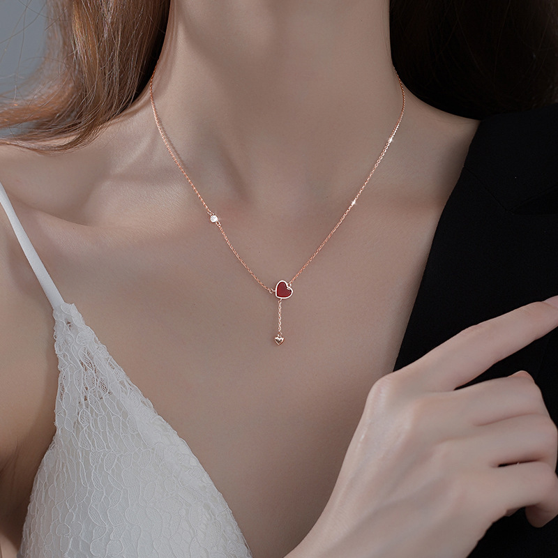 Red heart tassel necklace women's fashionable all-match sweater chain New niche design sense trendy clavicle chain gift