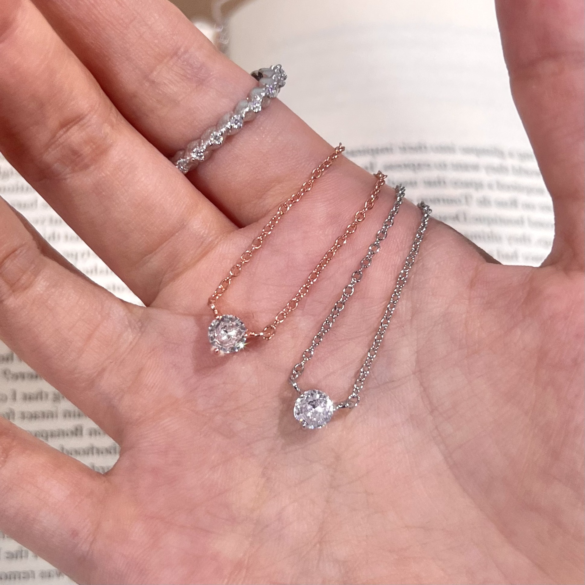 轻奢复古高级单颗镶嵌圆钻项链简约小众设计感百搭叠戴精致锁骨链