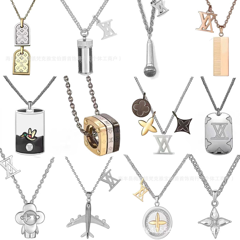 High version non-fading men's and women's L donkey three-ring pendant perfume bottle Cuban turquoise three-in-one ring necklace