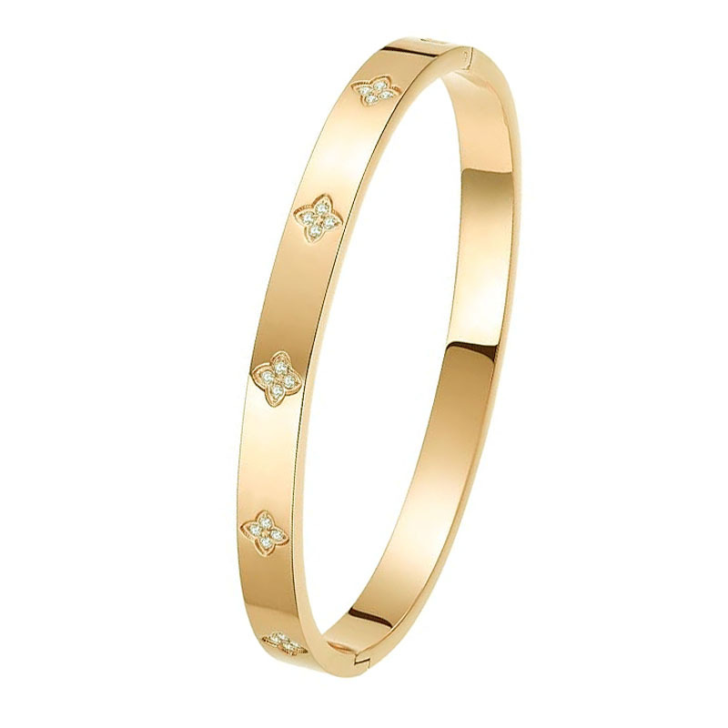 European and American Cross-Border Four-Leaf Shiny Diamond-Encrusted Alloy Bracelet for Female Couples, Trendy Light Luxury, Simple and Fashionable Plain Ring Bracelet