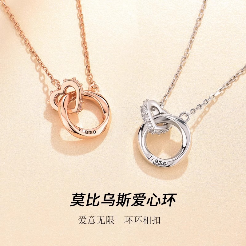 Mobius Ring Necklace Women's S925 Silver Light Luxury Niche Clavicle Chain Valentine's Day Birthday Gift for Girlfriend and Best Friend