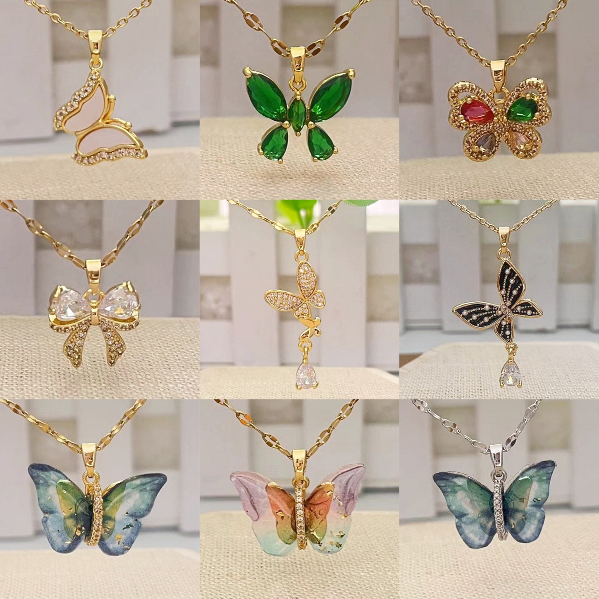High-End Necklace Accessories for Women, Micro-Inlaid Zircon Copper Pendant, Butterfly Series, Paired with Stainless Steel Chain, Fashionable Jewelry