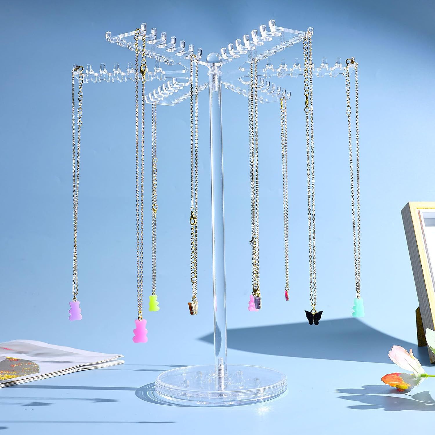 Acrylic Necklace Holder Rotating Necklace Holder Hanger Transparent Jewelry Holder Display Stand with 84 Hangers