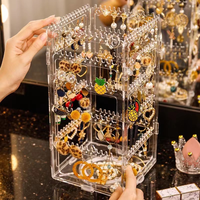 Earrings Jewelry Box Display Rack Rotating Large Capacity Multi-layer Transparent Acrylic Earrings Ear Studs Necklace Rack