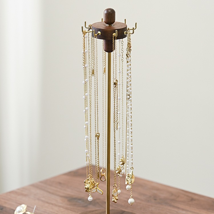 Necklace Display Rack Walnut Rotating Jewelry Storage Dressing Table Earrings Pendant Bracelet Jewelry Hanging Rack Solid Wood Rack