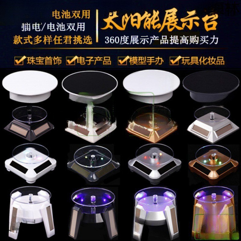 Electric Solar-Powered Rotating Display Stand with Light, Turntable Base for Mobile Phone, Figurine Model, Automatic Jewelry