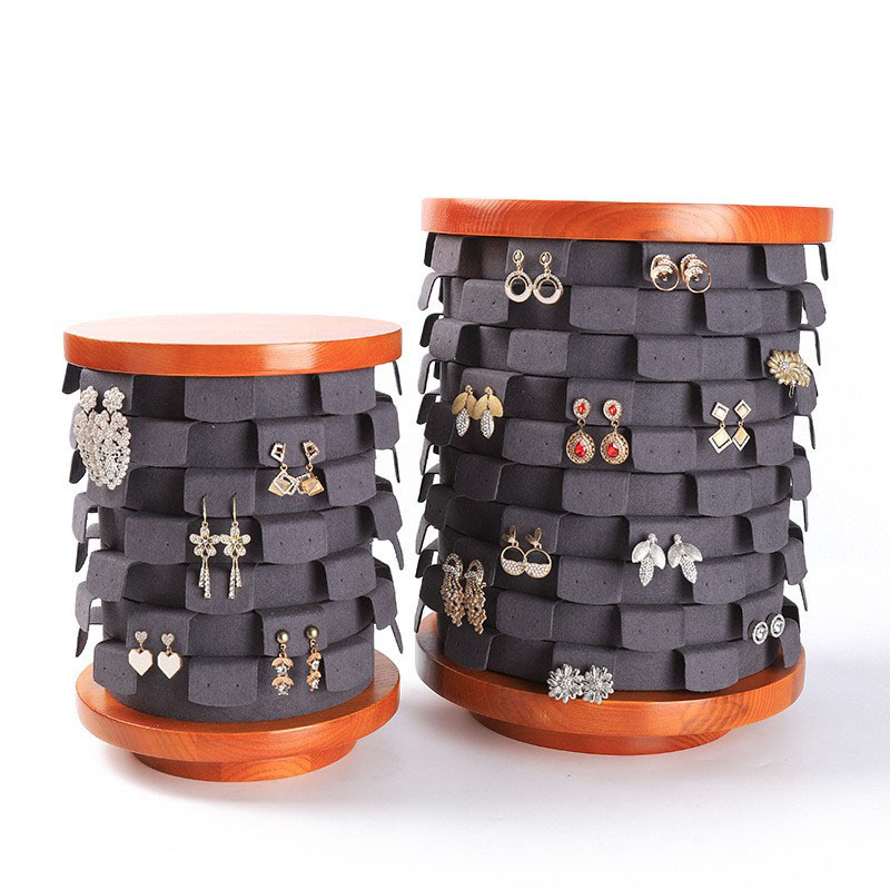 Jewelry Counter Jewelry Display Stand Rotating Display Earrings Earrings Wooden Microfiber Shelf Props Solid Wood Display