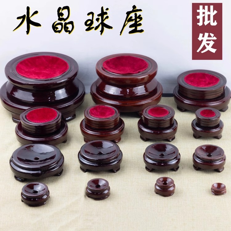 Round Rotating Crystal Ball Base Wooden Showcase Home Office Decorations Bottom Showcase Ornaments Wooden Holds