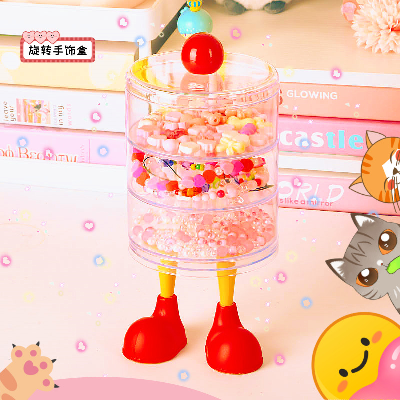 Storage Box Transparent Hair Accessories Accessories Box Rotating Desktop Simple Children's Box Organize Little Girl's Head Rope Earring Box