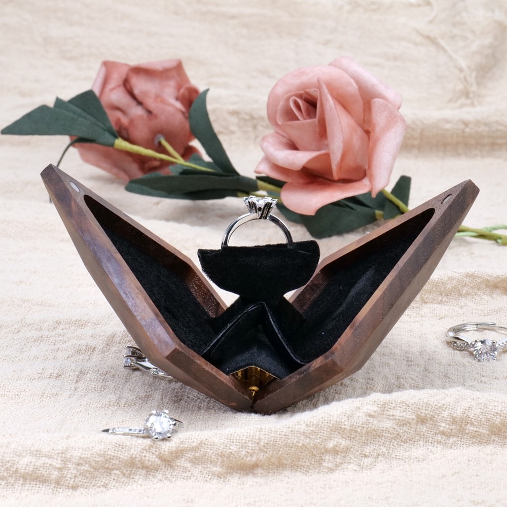 Black Walnut Rotating Ring Box Solid Wood Diamond Ring Box Marriage Proposal Diamond Ring Box Gift Box Creative Design