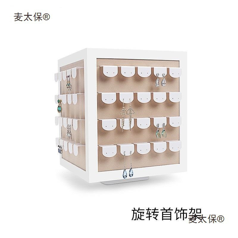 White Leather Coffee Side Rotating Earring Rack Jewelry Display Rack Props Storage Rack