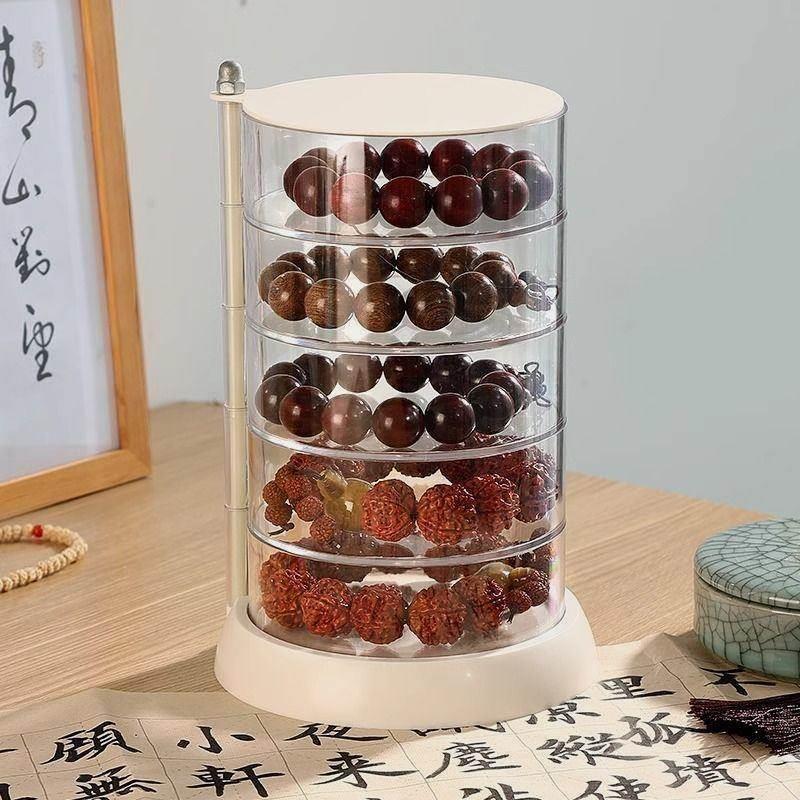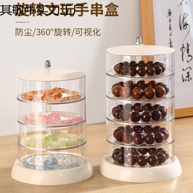 Wenwan Walnut Storage Box Rotating Dust-Proof Bracelet Jewelry Box Buddha Beads Bodhi Bracelet Display Box Transparent