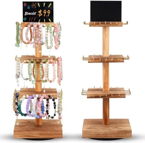 Wooden Rotatable Jewelry Display Rack Solid Wood Bracelet Display Rack 360 ° Rotating Jewelry Display Stand with Hooks