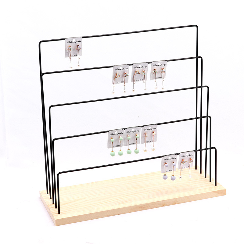 Solid wood multi-layer earrings display stand wrought iron metal live jewelry display props jewelry storage hanging rack