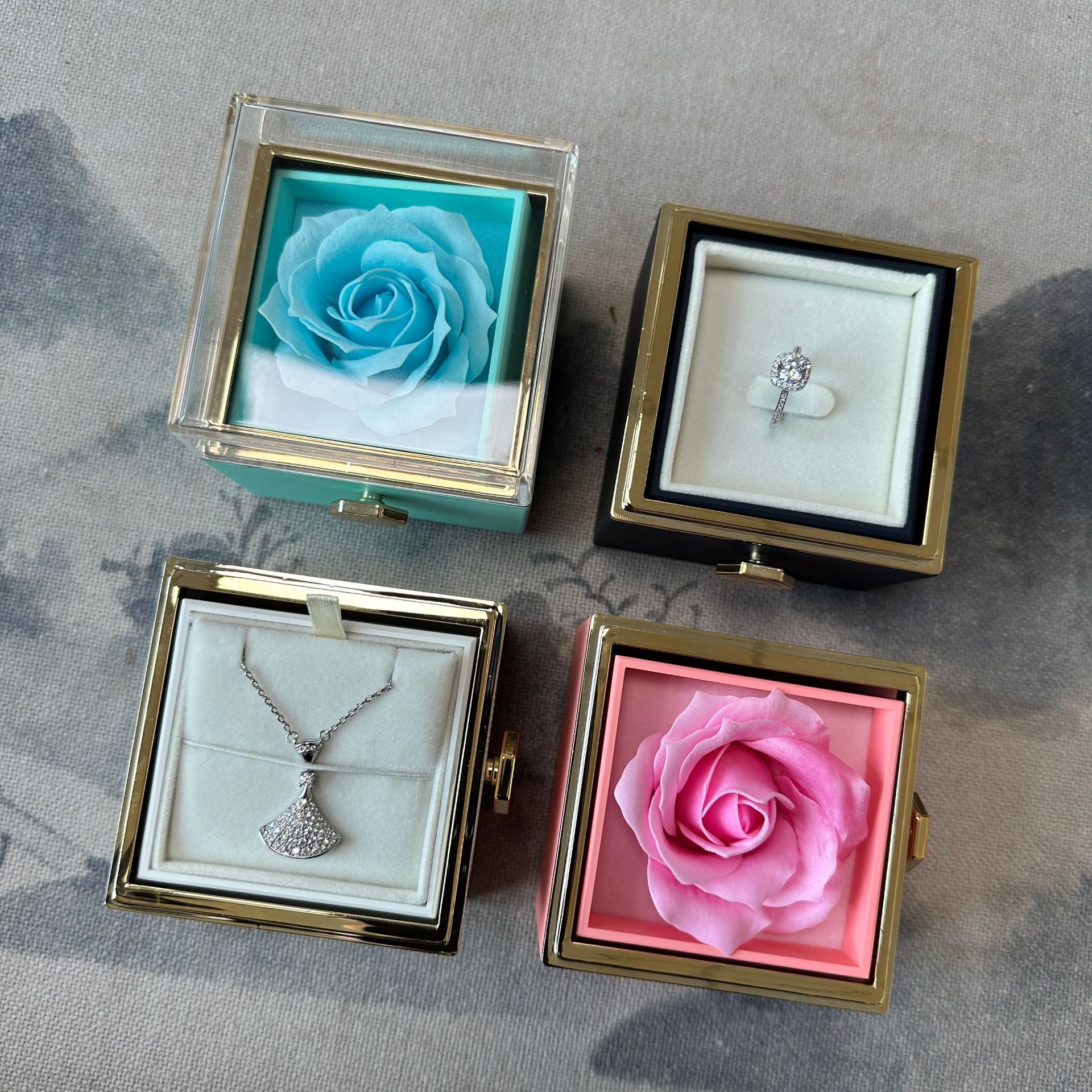 Jewelry Box eternal flower gift box Valentine's Day rose flower box in stock ring necklace creative rotating jewelry box