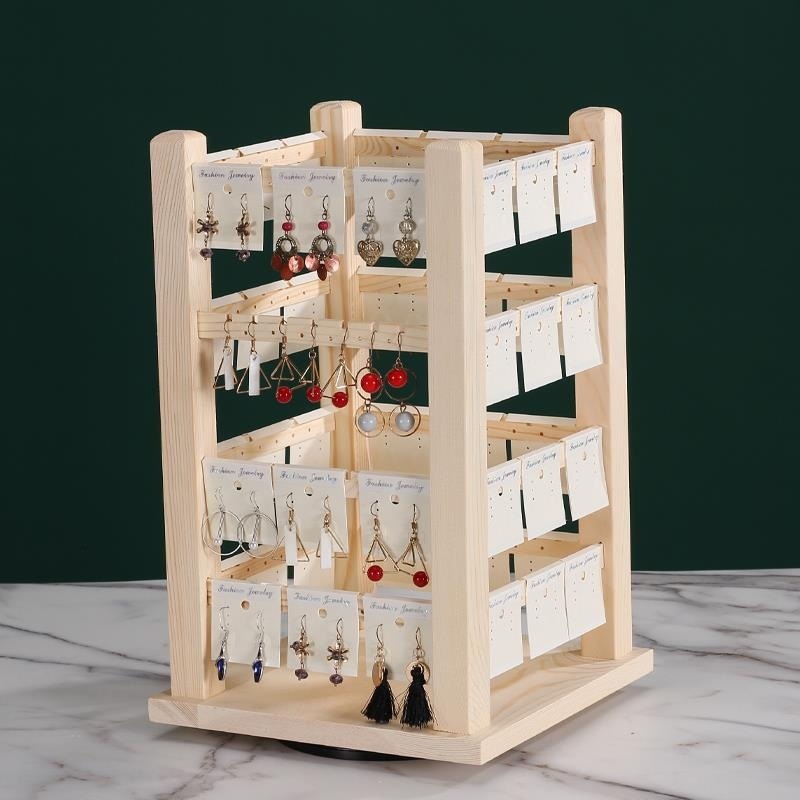 Jewelry Display Props Rotating Solid Wood Earring Display Stand Jewelry Rack Earrings Storage Multi-Layer Large Capacity