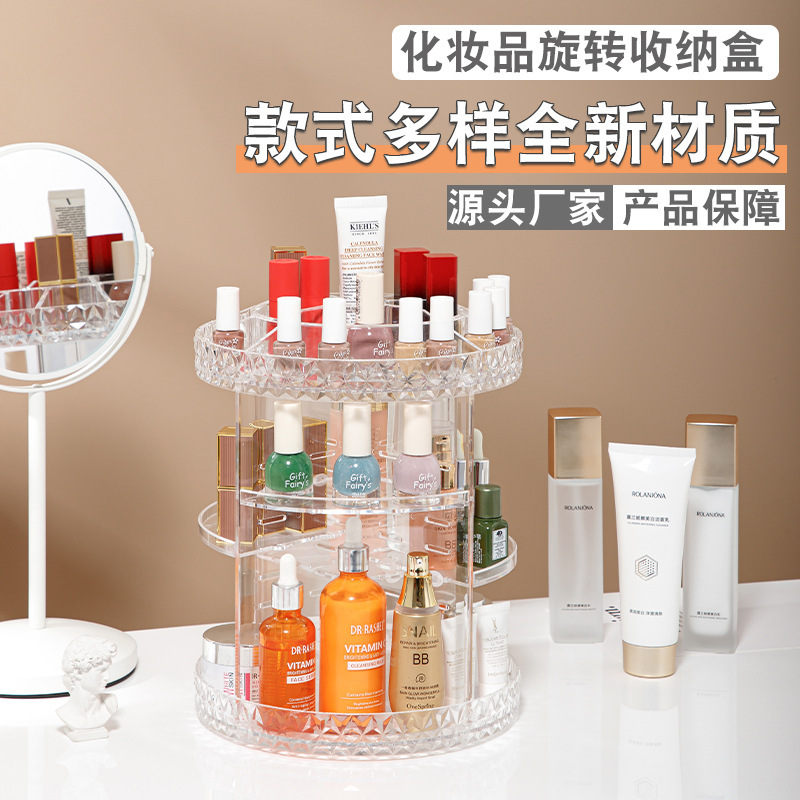 Transparent Rotating Cosmetic Storage Rack Desktop Storage Shelf Diamond Pattern Rotating Storage Artifact Display Rack