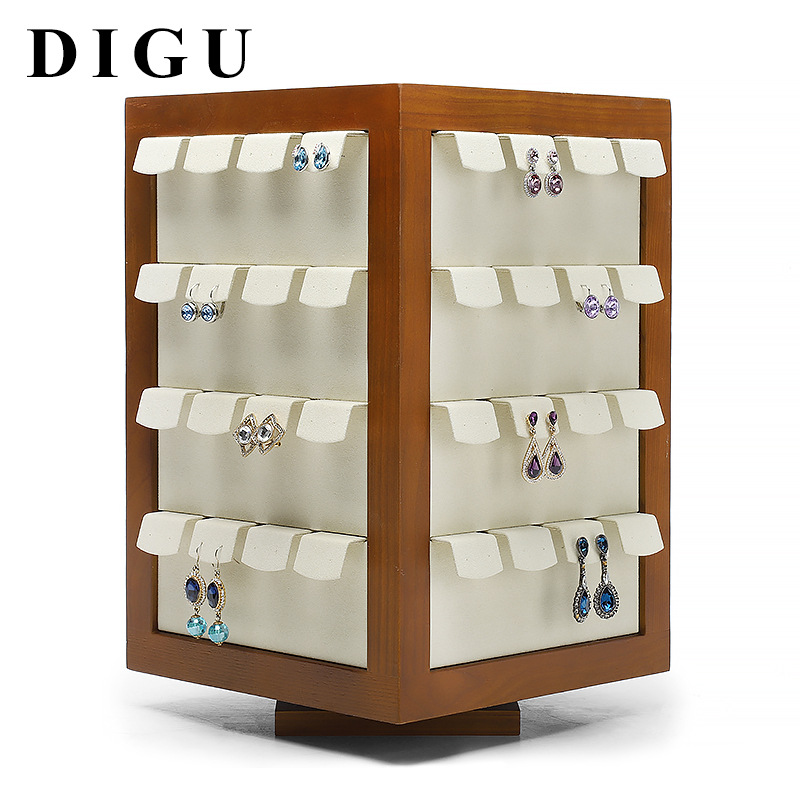 Solid Wood Jewelry Rack Jewelry Window Display Props Earring Storage Display Rack Four-Sided Rotating Display Stand Fiber Others