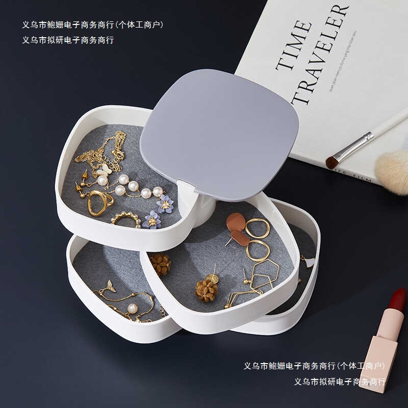 Mirror Small Necklace Earrings Multi-Layer Earrings Jewelry Box Rotating Jewelry Rack with Dust Box Earrings Storage Box
