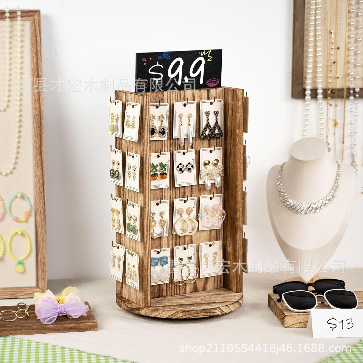 Wooden Rotatable Earrings Storage Rack Bedroom Desktop Jewelry Finishing Rack Solid Wood Jewelry Store Jewelry Display Rack
