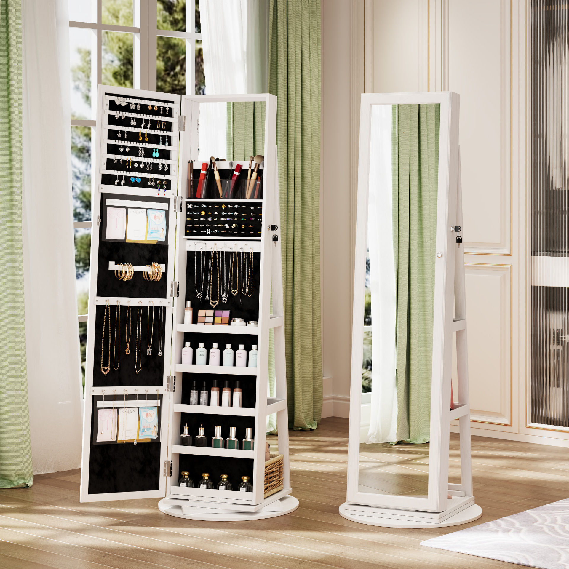 360-Degree Rotating Full-Length Mirror, Dressing Mirror, Makeup Mirror Cabinet, Jewelry Cabinet, Storage Cabinet, Fitting Mirror