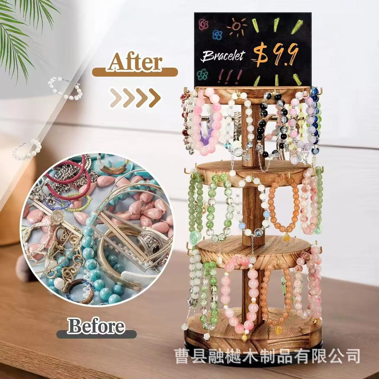 Wooden Rotatable Jewelry Display Stand Wooden Necklace Bracelet Stand Desktop Multi-Purpose Jewelry Storage Rack