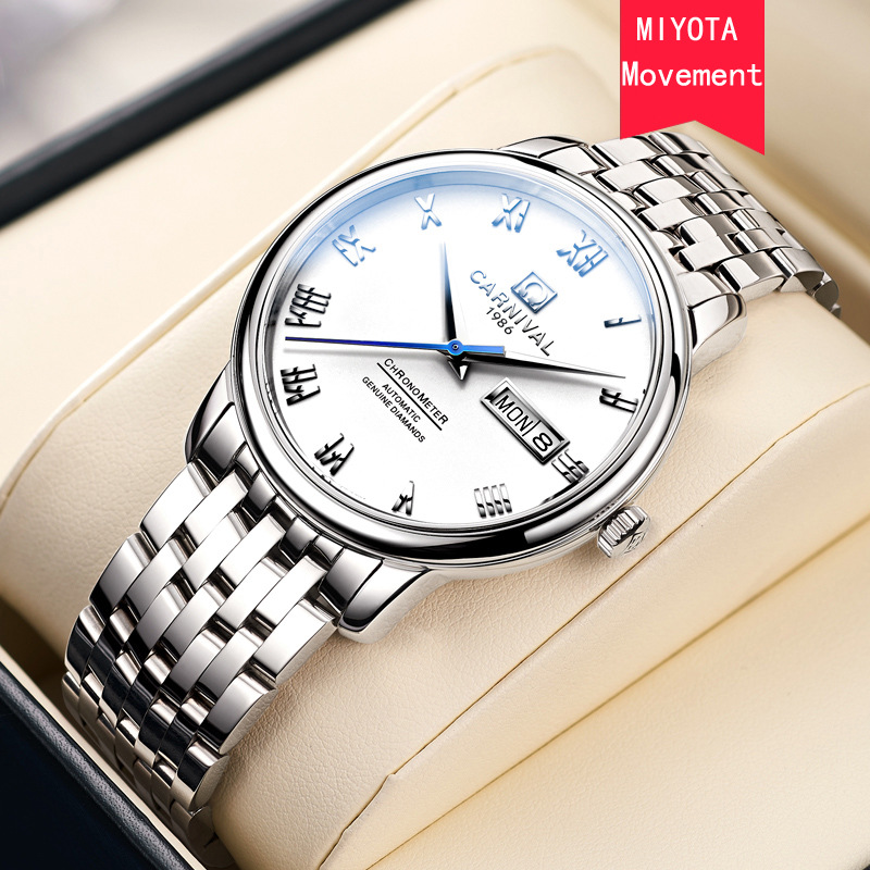 Carnival Watch Men's Automatic Mechanical Watch Sapphire Men's Watch Steel Waterproof Retro Classic Men's Watch
