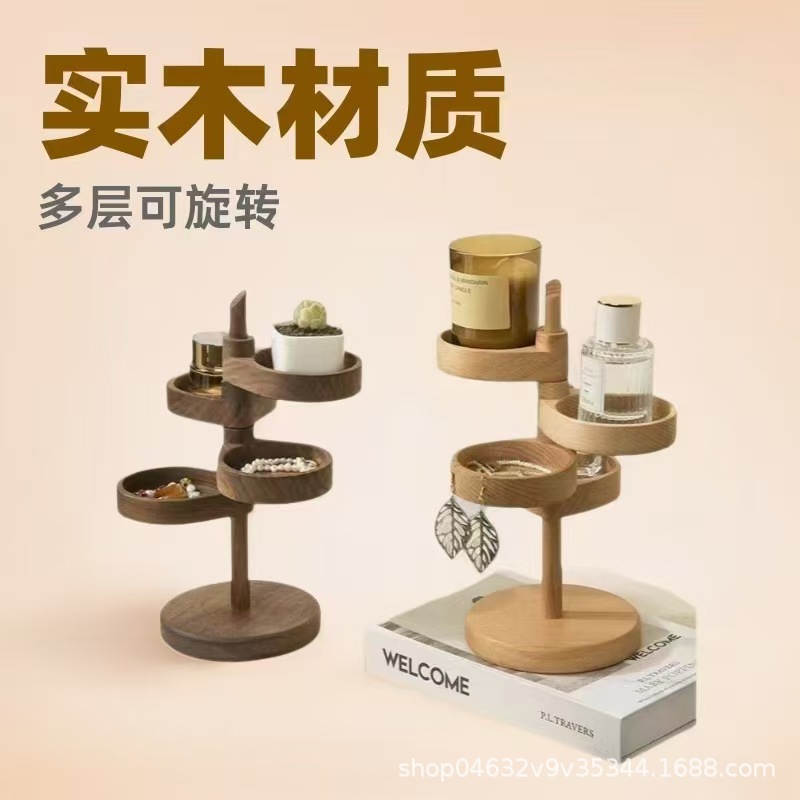Creative Rotatable Wooden Storage Rack Necklace Ring Trinket Display Rack Multi-Layer Perfume Aromatherapy Storage Rack