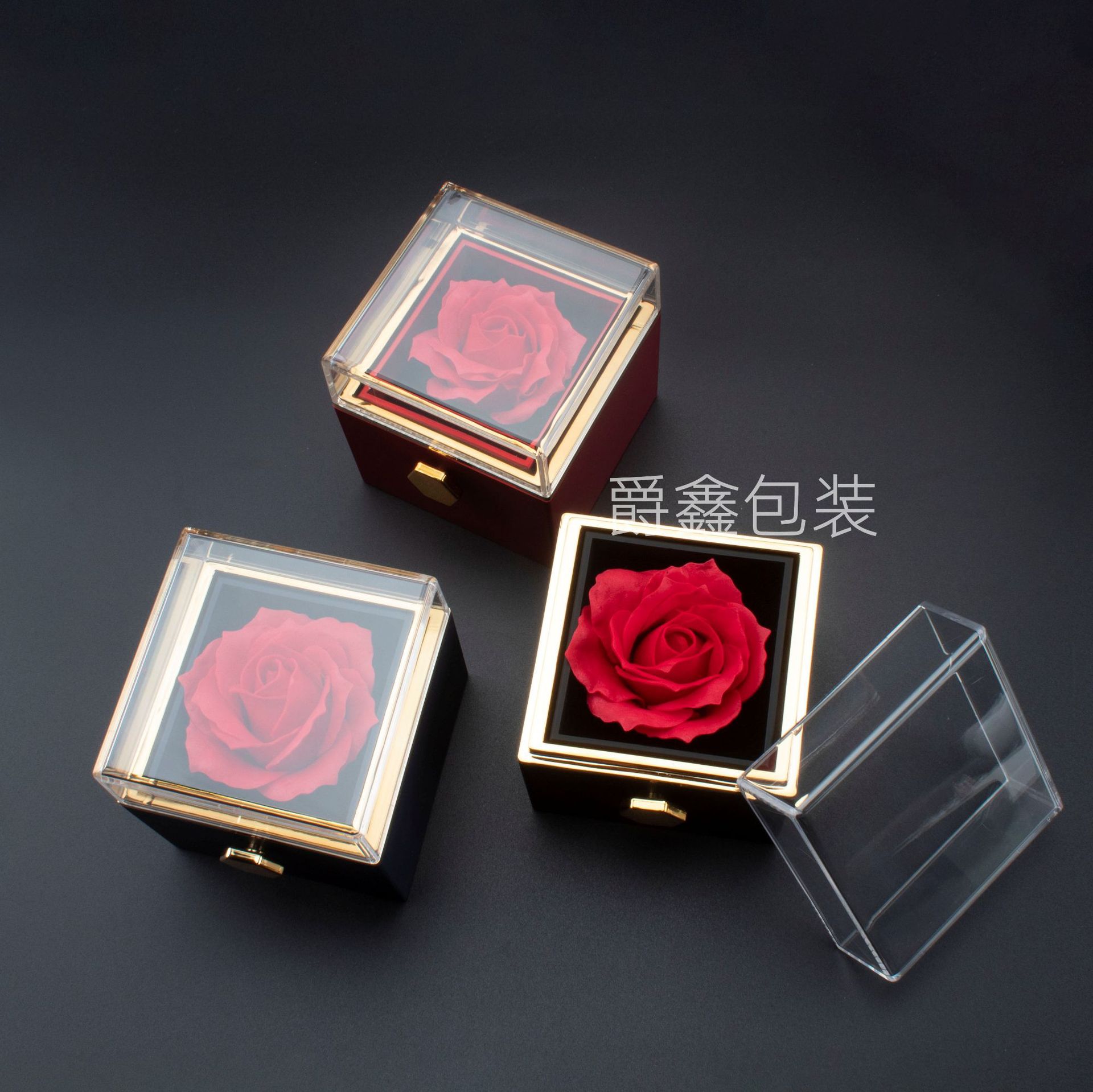 Fashion Design Diamond Engagement Ring Gift Box Square Eternal Rose Jewelry Box Transparent Necklace Display Box