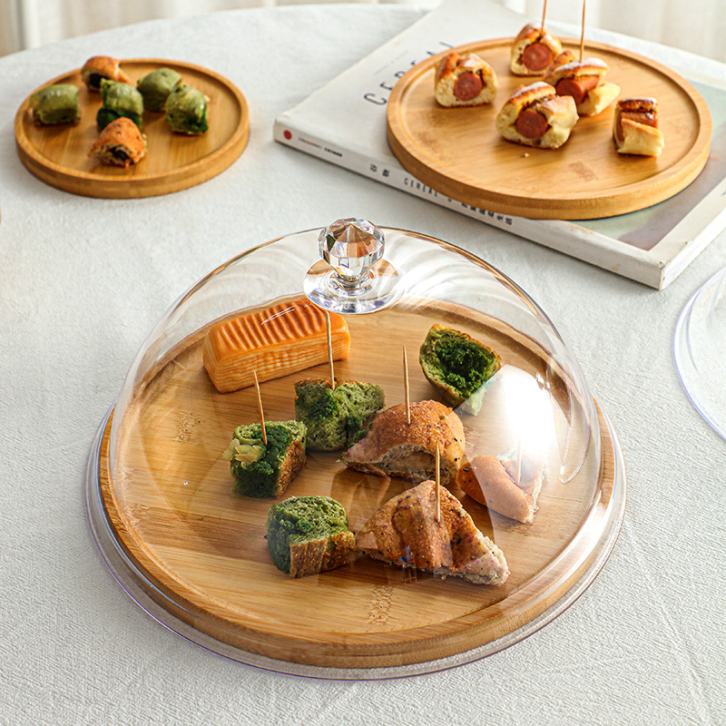 fruit tasting display plate food dust cover pastry plate dim sum tray with transparent lid round tasting box with lid