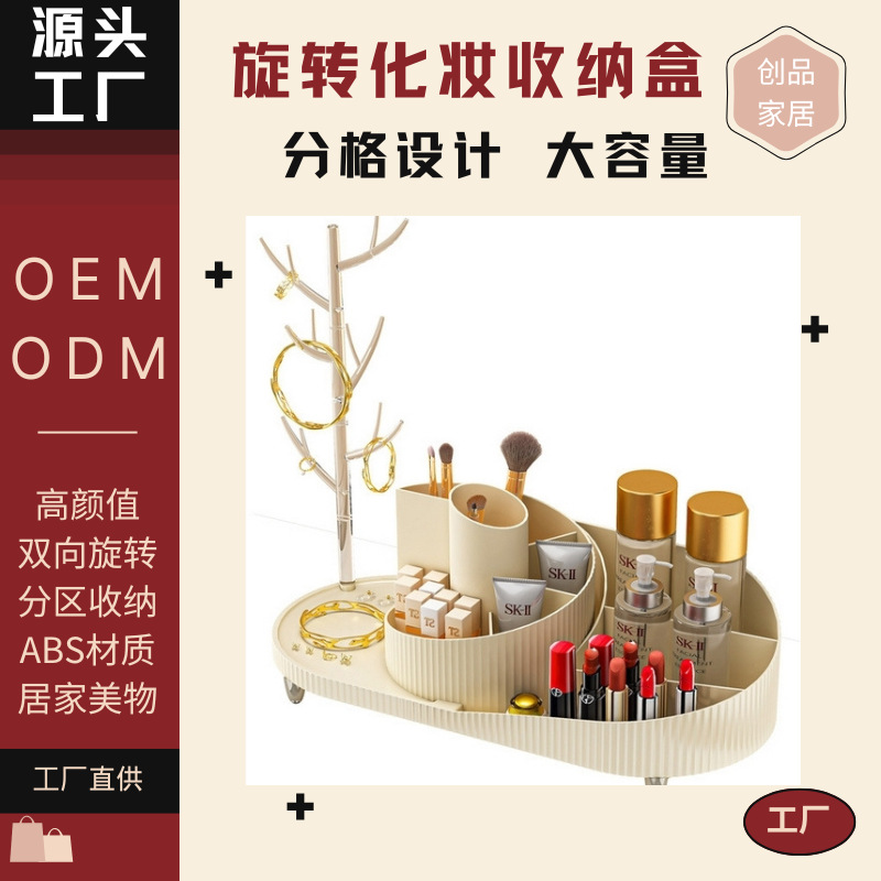 Desktop dressing table rotating cosmetic storage box makeup brush skin care perfume lipstick storage rack jewelry box