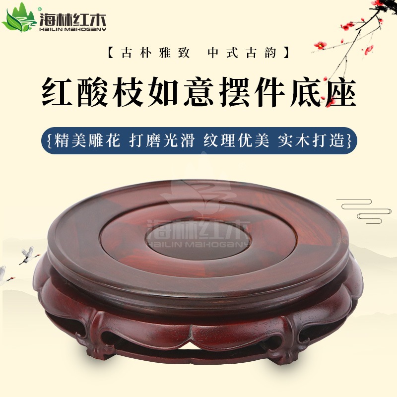 Red acid branch jade incense burner wine jar round ornaments base solid wood mahogany rotatable vase bonsai Buddha statue bracket