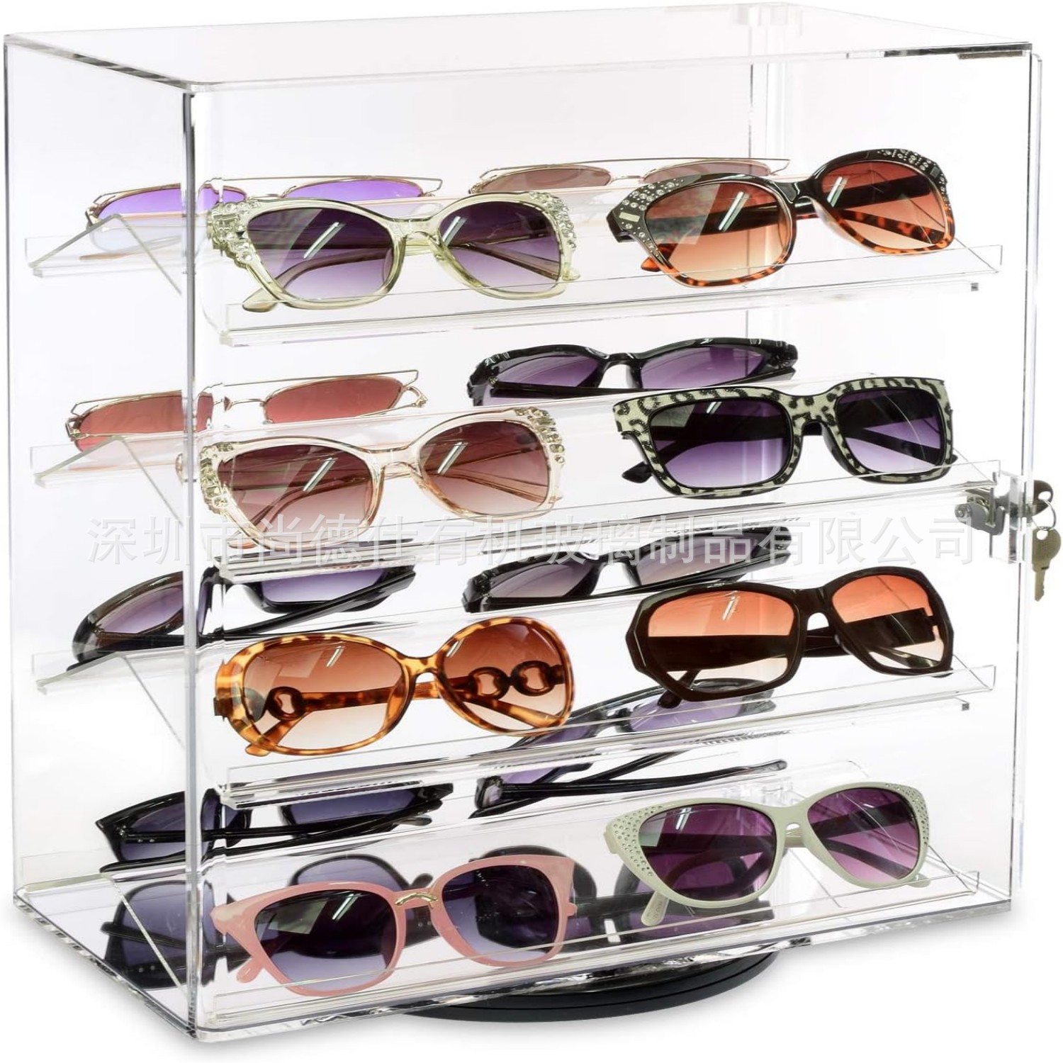Temu360 Degree Rotating Acrylic with 4 Removable Shelves and Key Lock Sunglasses Jewelry Display Glasses