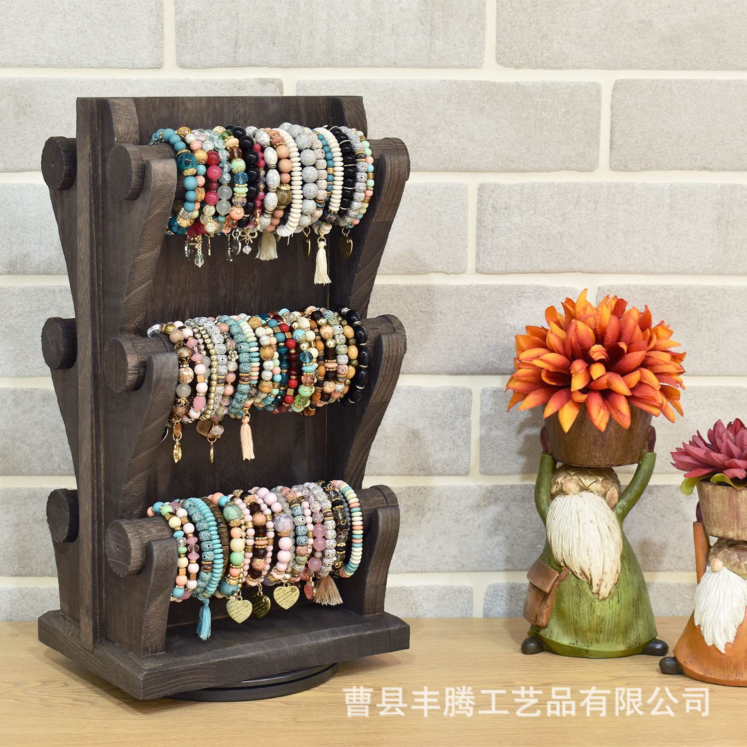 Cross-border wooden desktop rotatable necklace bracelet display rack solid wood multi-layer bracelet multi-purpose storage rack