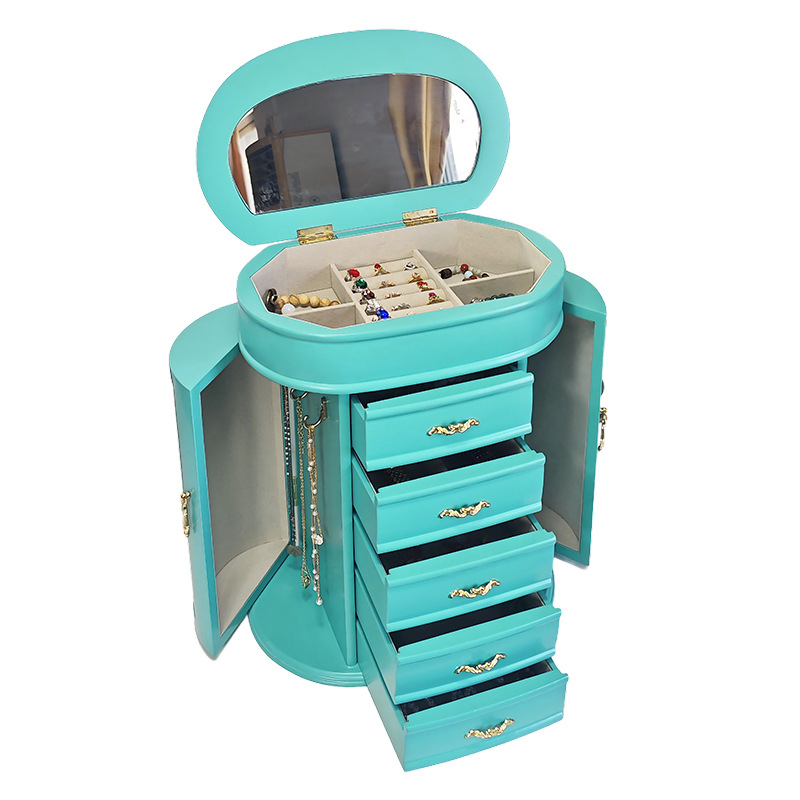 Cross-Border Wooden Multi-Layer Jewelry Box Large-Capacity Storage Box with Mirror Multi-Functional Jewelry Storage Cabinet Customization