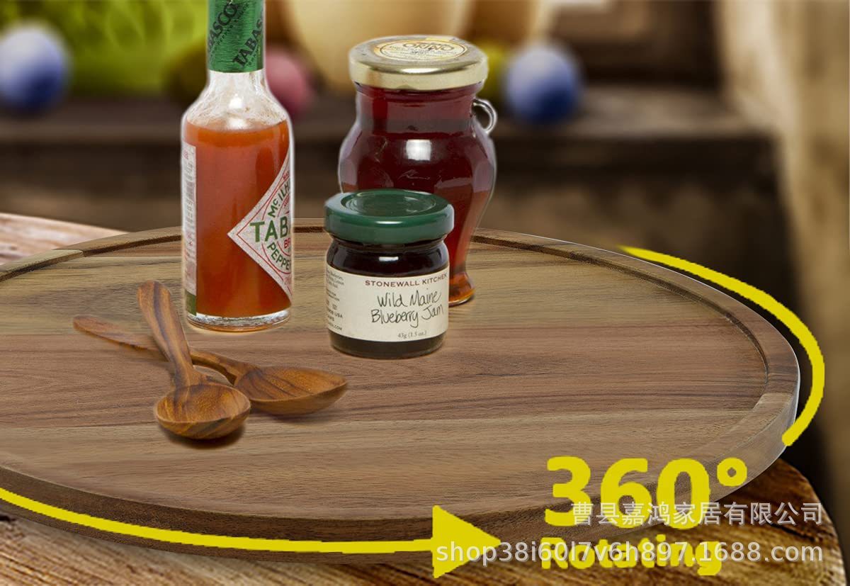 Wooden rotatable storage rack kitchen seasoning rack round acacia wood display plate kitchen dining table wooden turntable