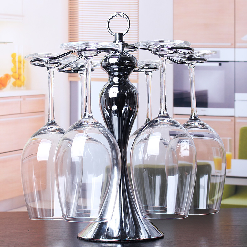 Creative European-style Stainless Steel Red Wine 6 Points High Foot Wine Glass Holder Diamond Rotating Inverted Desktop Wine Rack Ornaments