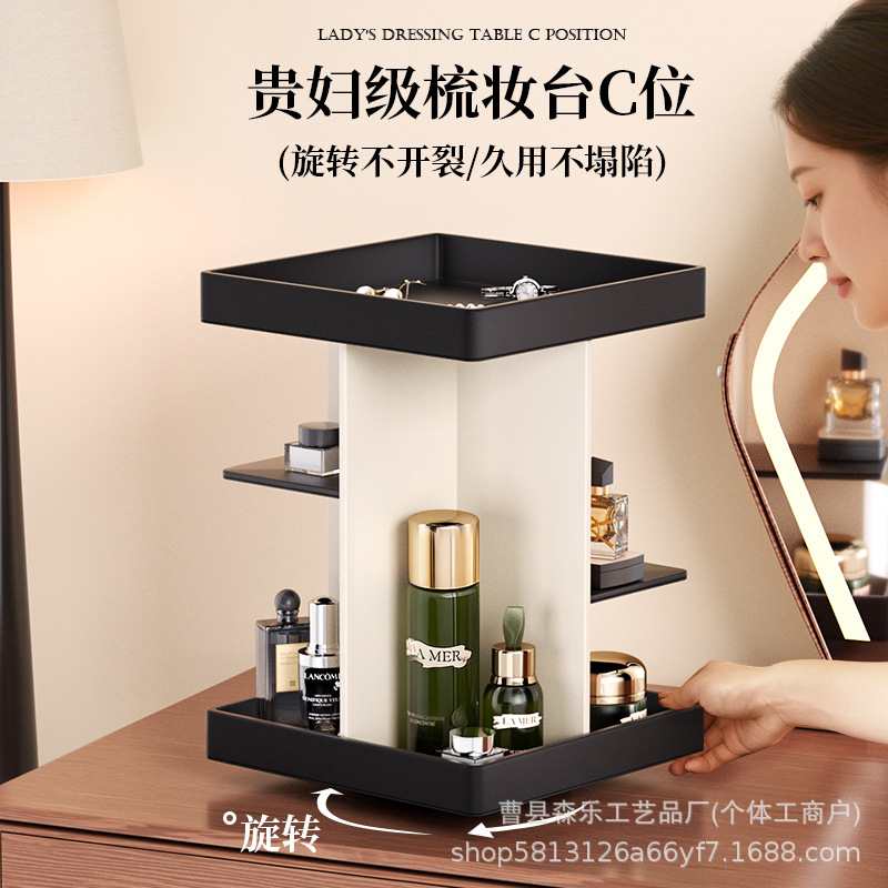 Wooden Rotatable Cosmetics Storage Rack Three-Layer Countertop Jewelry Rack Dressing Table Bathroom Perfume Essential Oil Storage Rack