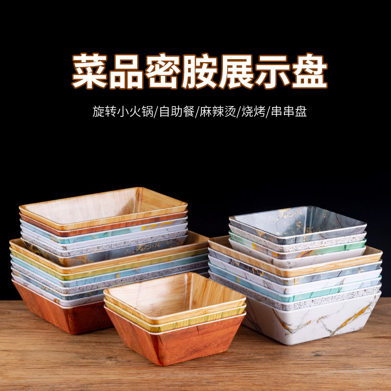 Melamine Tableware Spicy Hot Pot Display Plate Imitation Porcelain Barbecue Vegetable Box Self-Service Rotating Hot Pot Selection Plate Commercial