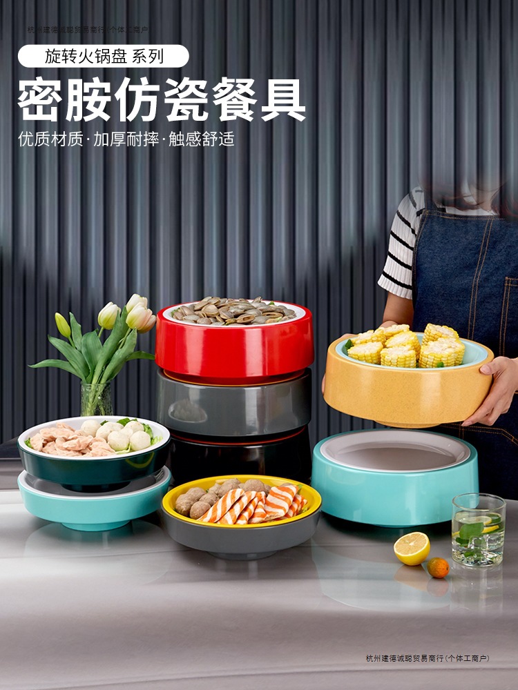 Melamine Trendy Rotating Small Hot Pot Bowl Commercial Self-Service Hot Pot Dish Plate Turntable Display Plate Double-Layer Plate